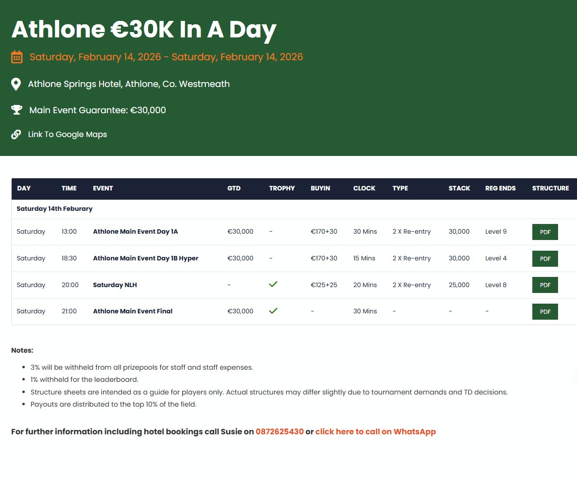 Main Event Buy-In - €170+€30 with GTD of €30,000.