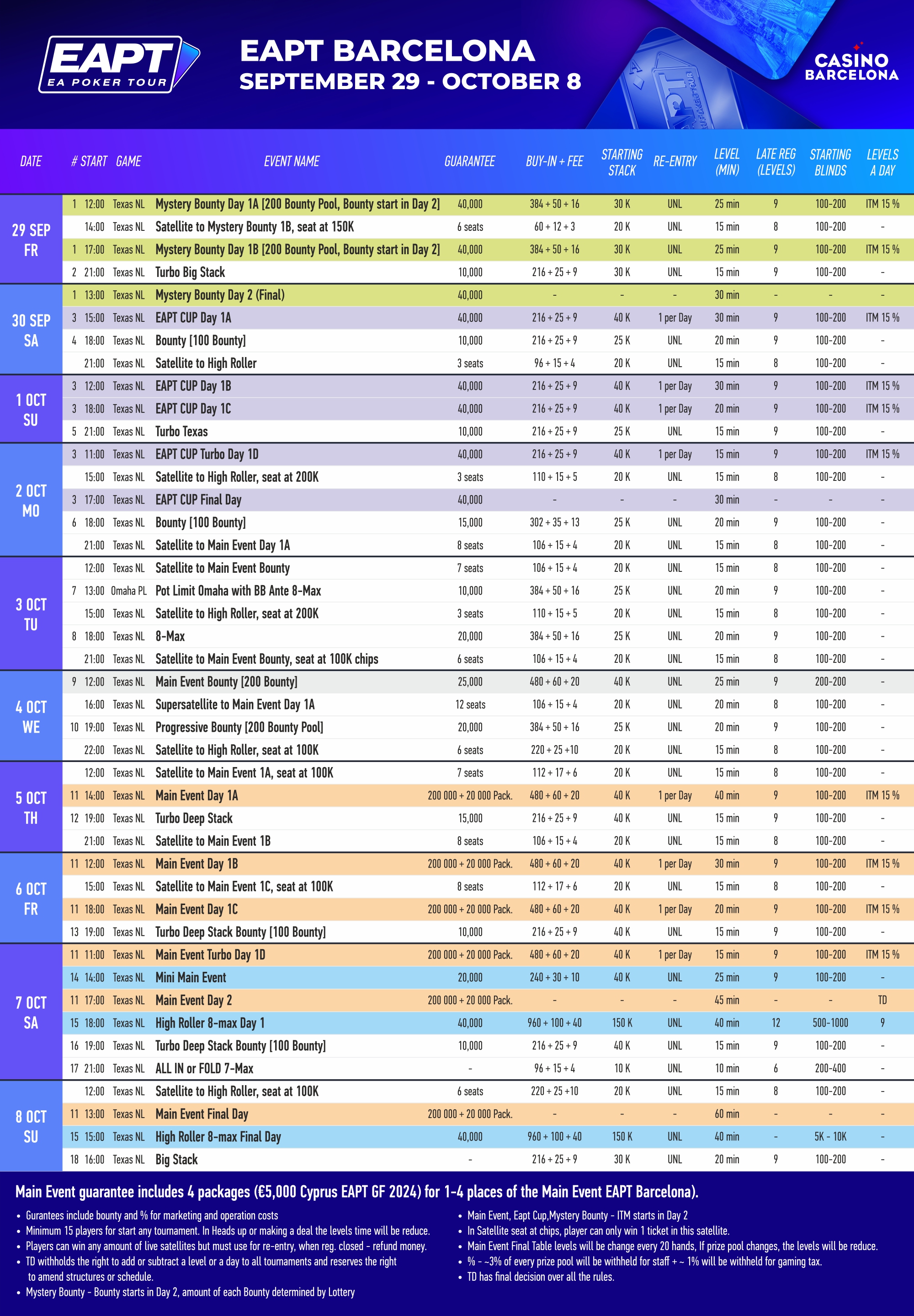 Main Event buy-in €560 | €200K + €20K in packages GTD