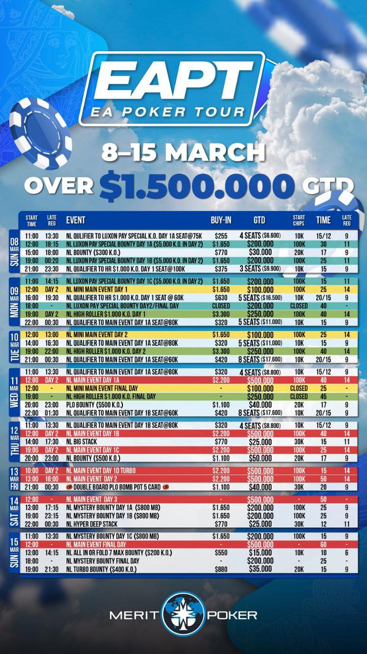 Main Event buy-in: $2,200 $500K GTD Main event