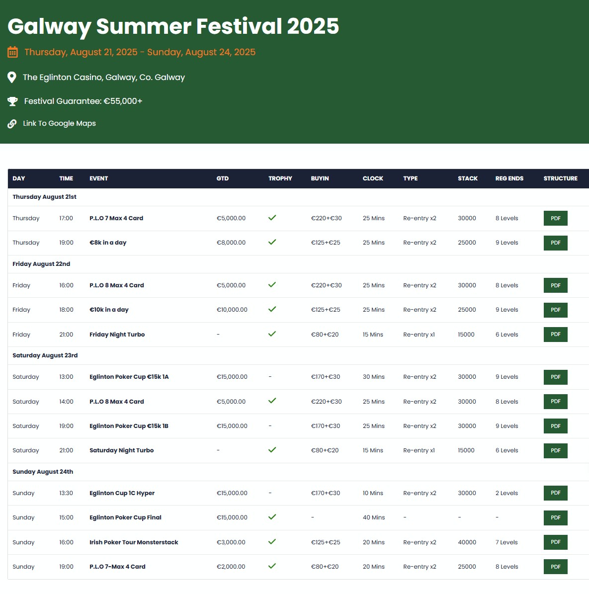 Main Event Buy-In of €170 + €30 with a festival guarantee of €55,000