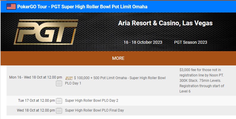 PGT Super High Roller Bowl Pot Limit Omaha will be returning in October to Aria!