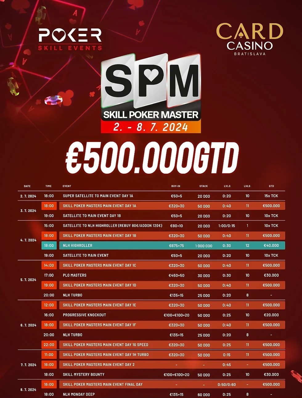 Main Event Buy-In: €320+30 with a GTD of €500,000