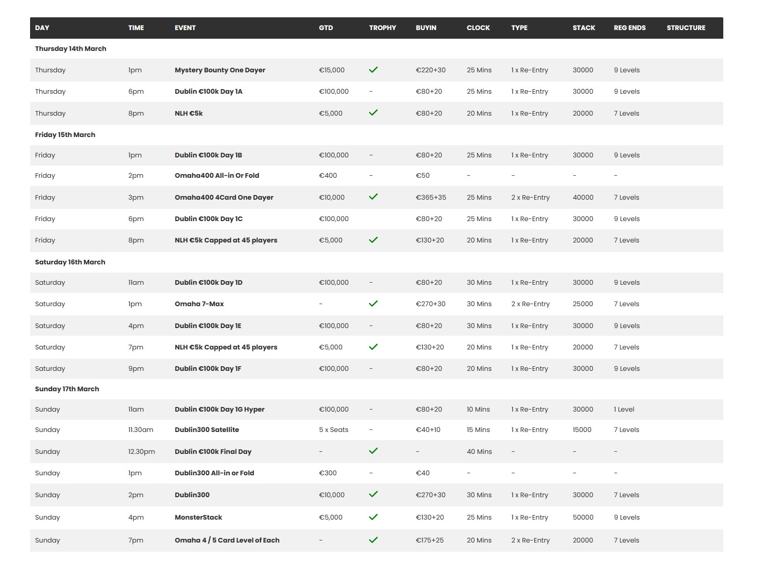€100 buy in with a festival guarantee of €145,000.
