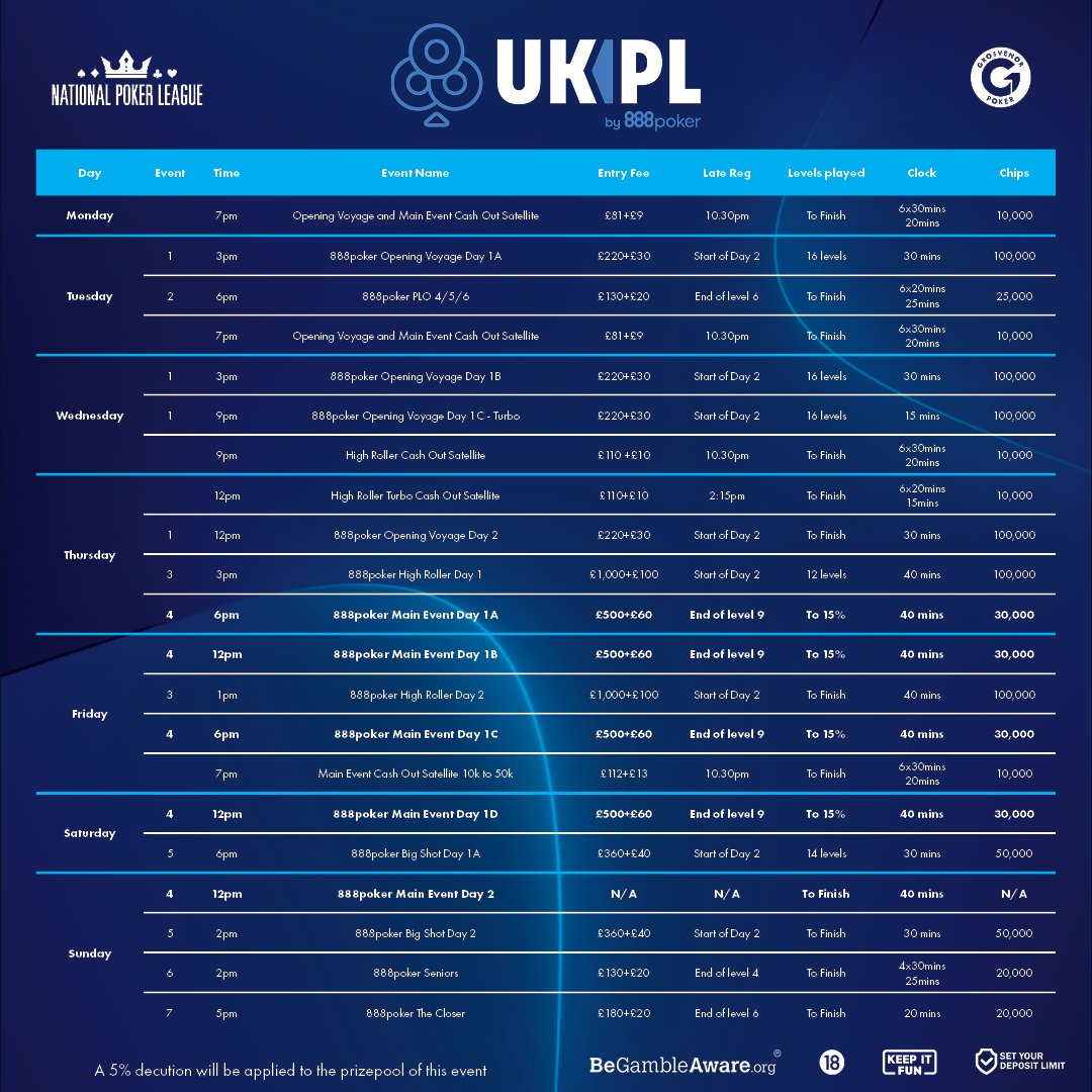 The Buy in fee is £500 + £60. Check out all the details and the schedule.